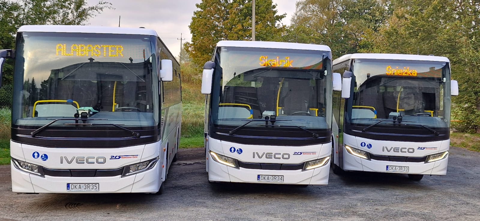 W ramach konkursu KPO „Zero- i niskoemisyjny transport zbiorowy” w 2025 roku do naszej floty dołączyły trzy autobusy marki IVECO Crossway Line. A już 19 września podpisaliśmy kolejną umowę – na zakup dwóch następnych pojazdów, które trafią do Kamiennej Góry w styczniu i kwietniu 2026 roku.