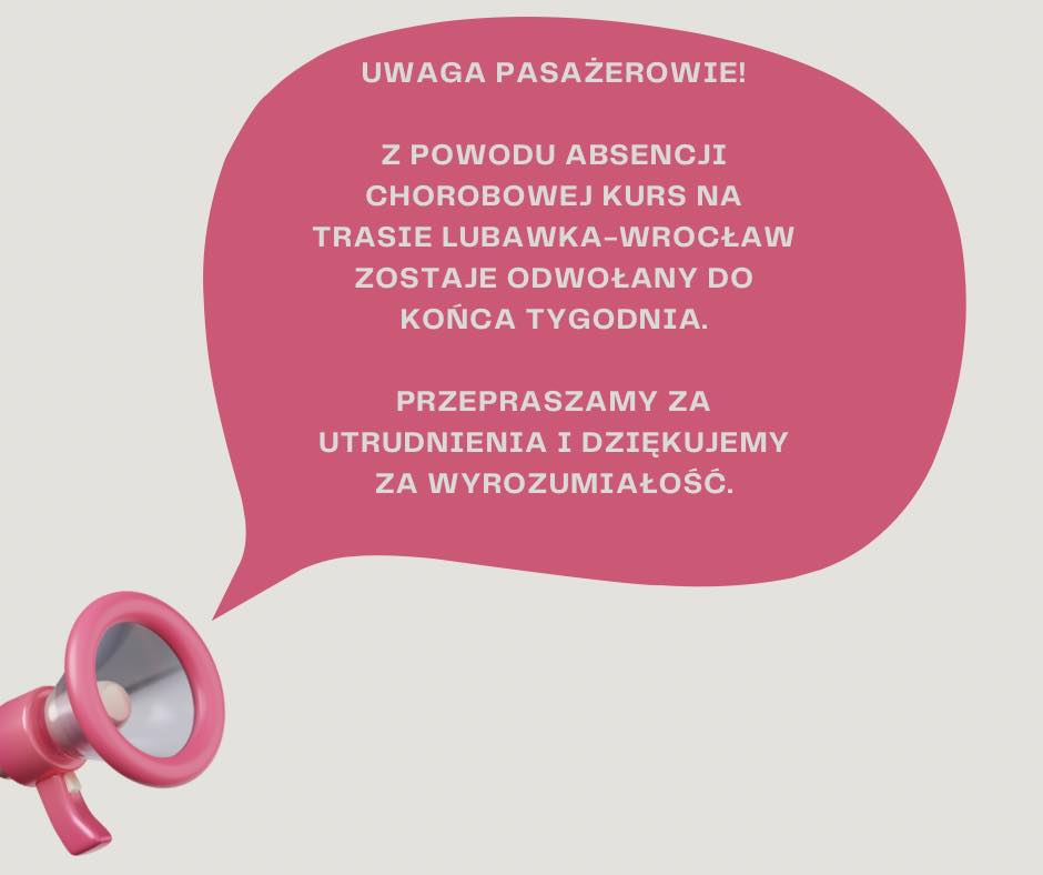 Odwołany kurs relacji Lubawka-Wrocław-Lubawka